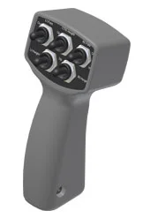 Cyber-Tech, Inc. P-10 Series Grip is an exceptionally hi-tech, ergonomic, cost effective industrial control. The housing is made of glass filled ABS and is just as resilient as our die cast aluminum handles. The P-10 can be ordered in configurations of 2, 4, 6, 8 and 10 thumb pushbuttons. The trigger can be located in the center of the grip making it usable by right or left handed operators. Many of our customers take advantage of the option of adding a second trigger on either side of the handle as required. The P-10 can be modified to fit your application. We offer toggles, rockers and can customize circuit card design depending on your application.